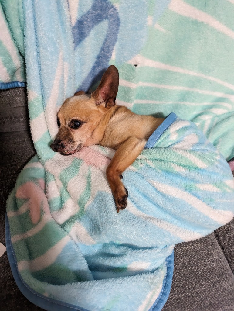 I thought of how Nacho used to like many Chihuahua’s as they get old if they are on furniture asleep… he would roll over and fall off the bed. Nomatter what he would get up shortly after and be okay. There were several times I used my training in Physical Therapy to help him, but he was a fighter and a tumbleweed. Not to mention the santa suit that my sister sent him that was the same year we came across Larry the Cable guys Christmas songs. If you know you know and if you don’t, trust me you don’t want to. But this guy was the snuggliest little doggy you’d ever meet. He always wanted a blanket and would find anyone laying on the ground and hide in it. He loved laying on my chest and laying with me for warmth… probably because I am a human blast furnace, but he loved it so very much.
